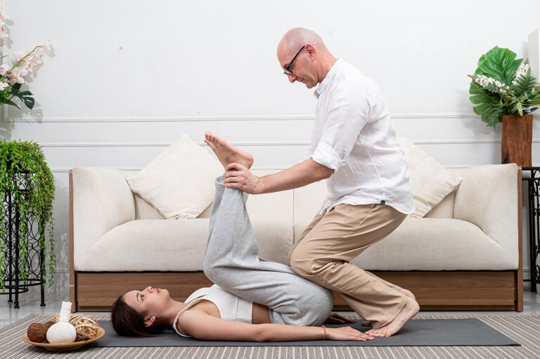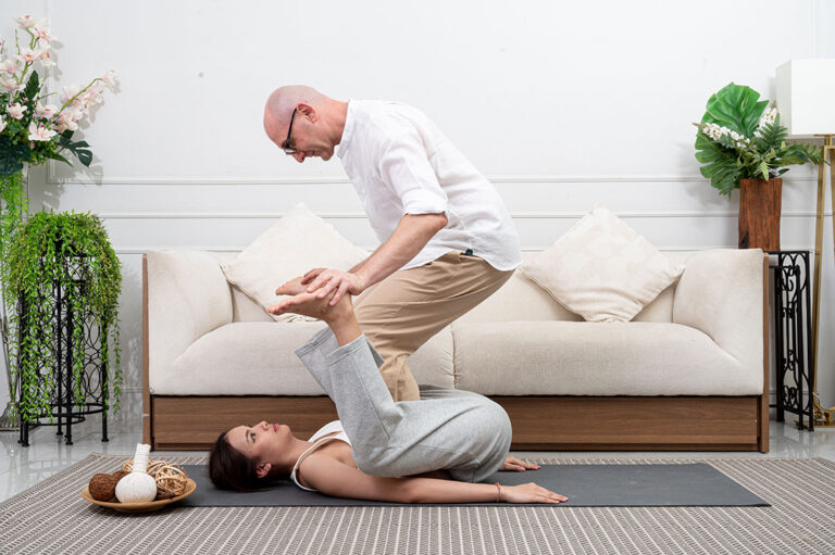 1. Masaż tajski w 4 pozycjach ułożeniowych (na plecach, na boku, na brzuchu, siedząc).